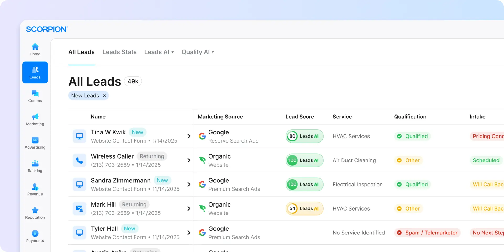 “If a lead comes in digitally through Scorpion, we have a 15-minute response time. If it isn’t answered in time, I’m alerted. It’s that important to us.”