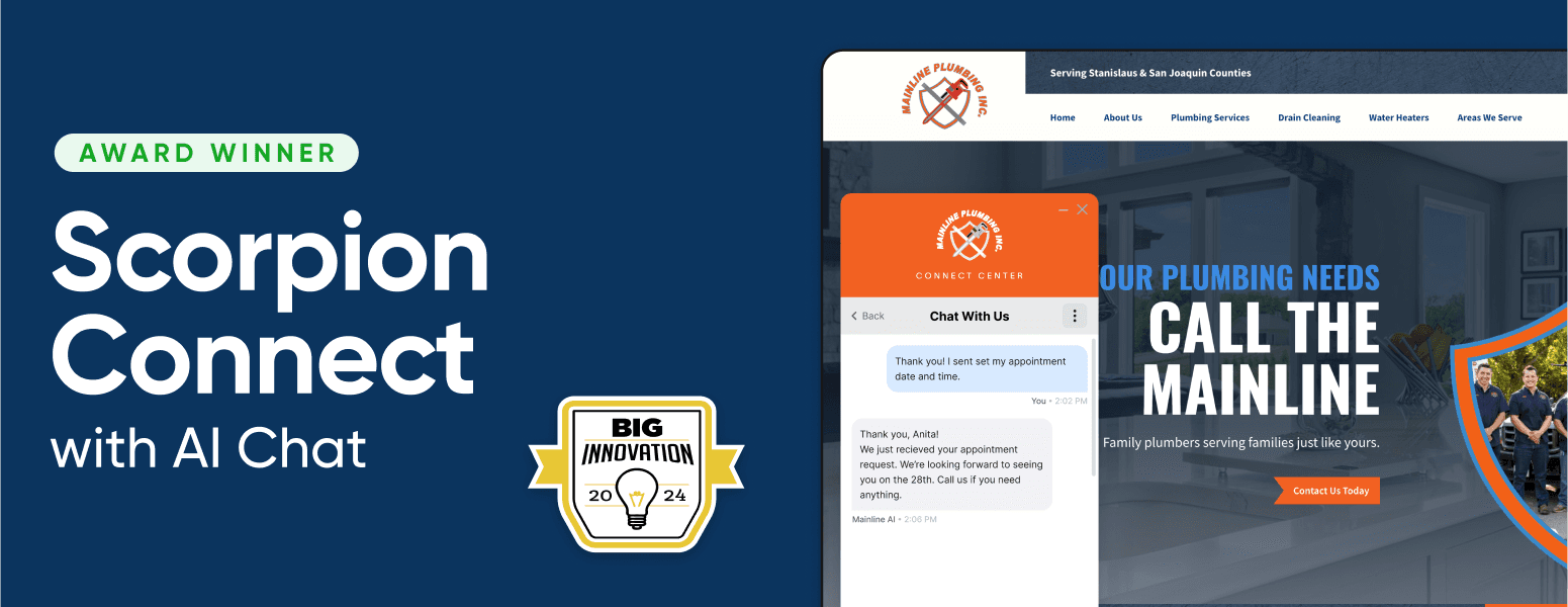 With expertise built from more than two decades of experience, our Scorpion teams have been instrumental in helping local business owners harness the power of technology paired with marketing strategies that work to achieve their goals. Through award-winning AI technology and business expertise, our marketing experts are ready to help you run your best business. Contact us today to learn more.