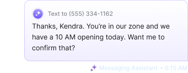 Messaging Assistant instantly responds to missed calls, texts, website chats, Facebook messages, LSA leads, and contact forms, 24/7.