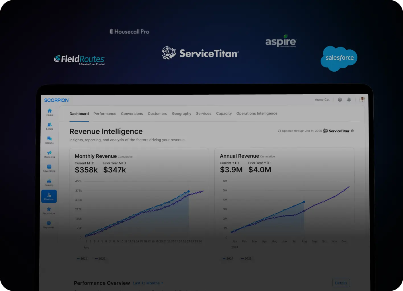 AI + CRM IntegrationPlug into ServiceTitan, Salesforce, FieldRoutes, and more to unify marketing with operations—and eliminate data blind spots.