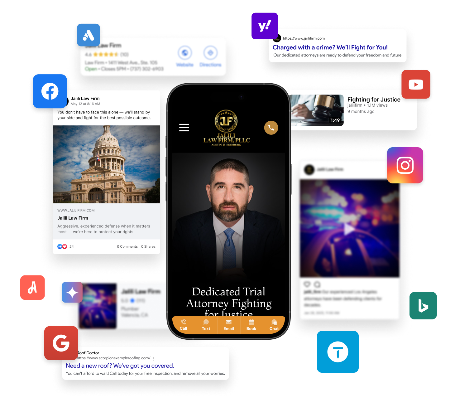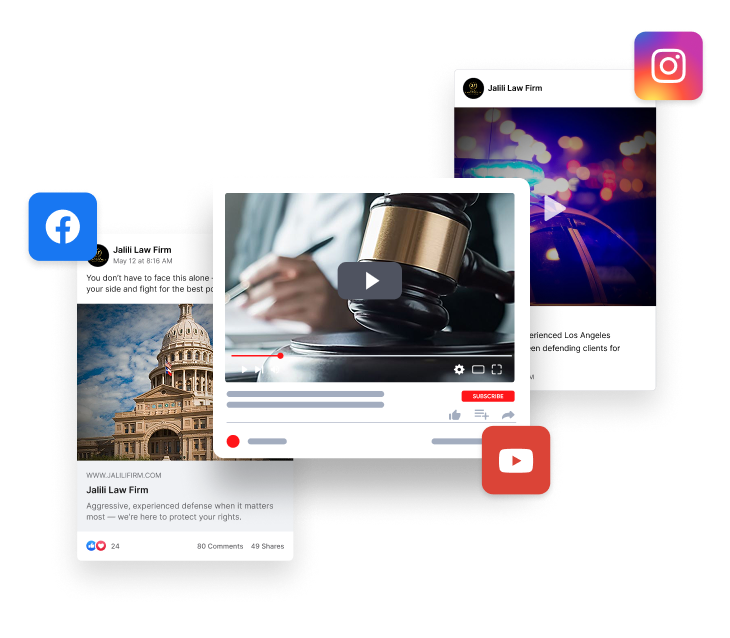 Social AdvertisingGet their attentionBe seen as the defender they need with social ads designed to be direct and persuasive—so when someone’s in trouble, your firm is top of mind.