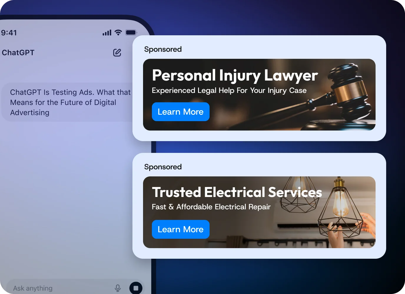 Ads appear below ChatGPT’s answers, clearly labeled and visually separated. They don’t interrupt the response but are part of the overall experience.