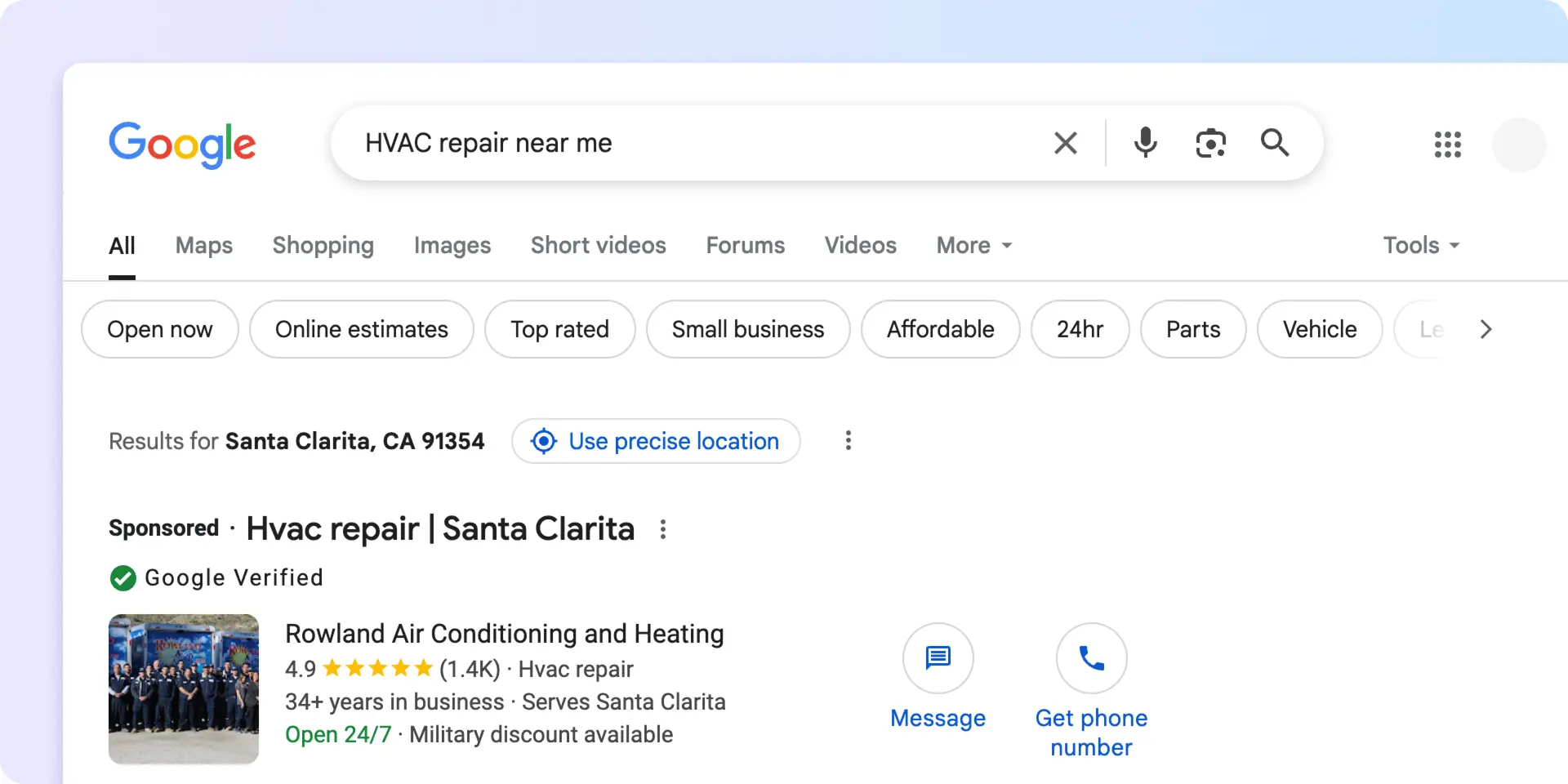 Google Ads (PPC ads) can generate instant leads by displaying your HVAC business at the top of search results when customers search for high-intent keywords like:
